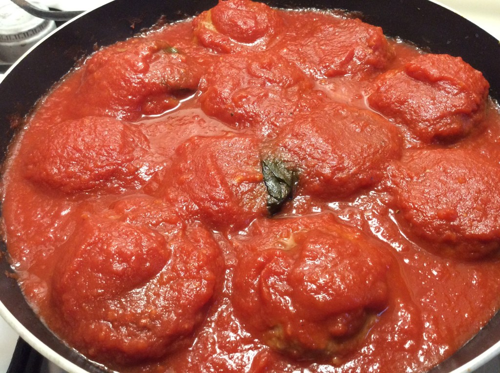 Heat a little extra virgin olive oil in a pan, brown the meatballs, turn them, and after a few minutes put the meatballs into the tomato sauce.