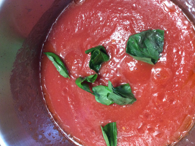 First, prepare the sauce. Puree the tomatoes in a blender. Heat the oil in a large pan and add the chopped onion. When the onion is golden, add the tomato puree and cook over low heat for about 20 minutes. Then season with salt, add the basil and set aside.