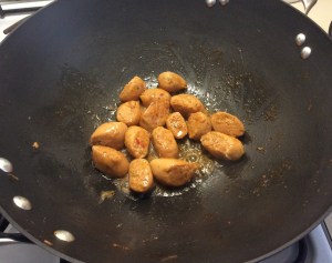 When the vegetables are ready, season with salt if necessary – be sure to taste before adding salt, because the sausage may already be salted. Add ground pepper, and basil leaves, oregano, or other aromatic herbs as you like.