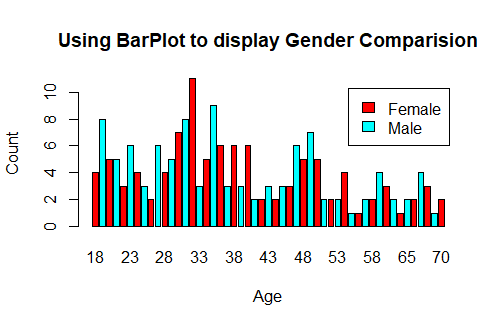 barplot(age_tab,main="Using BarPlot to display Gender Comparision",