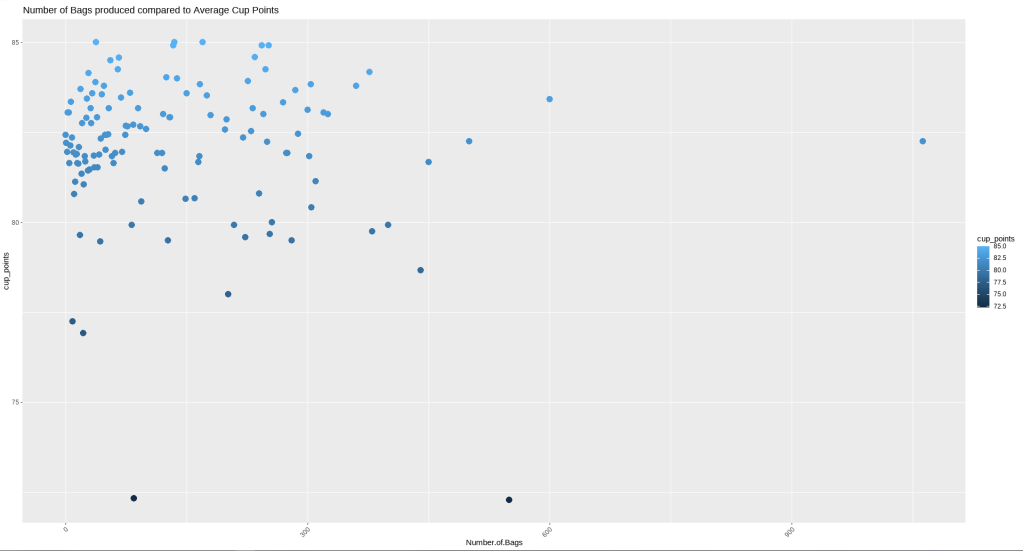 ggtitle("Number of Bags produced compared to Average Cup Points")+