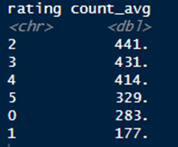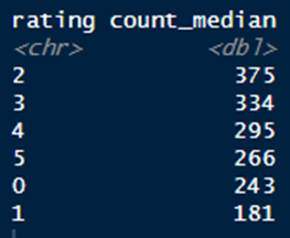 Median count of reviews by rating
