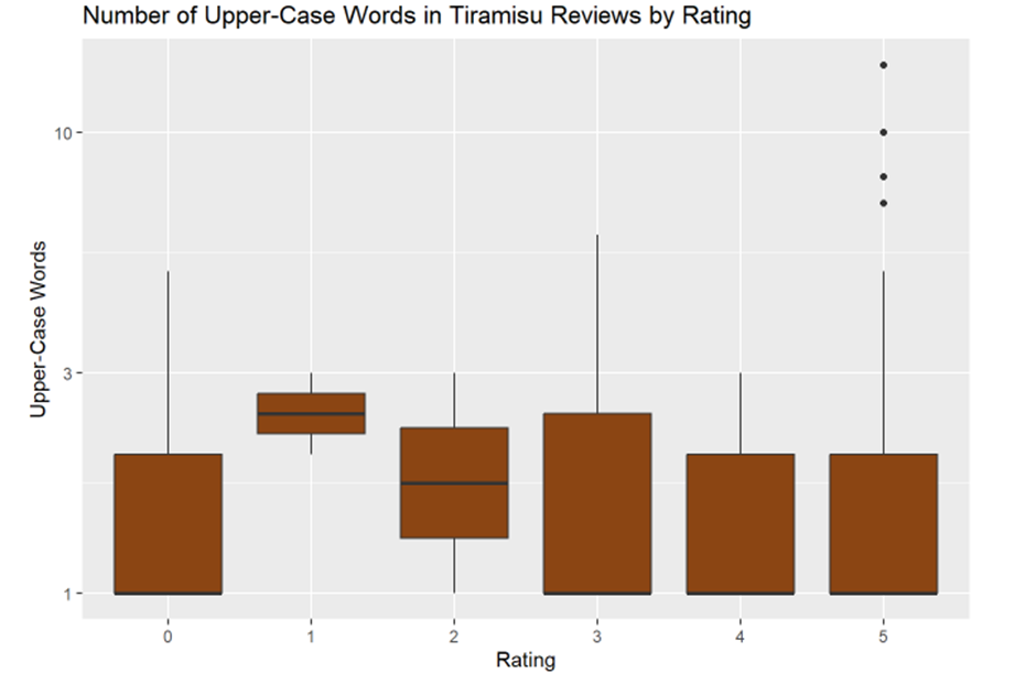 1-star-rated recipes have more upper-case words, followed by 2-star-rated recipes. This is probably a sign of distress and a shouting-like reaction.