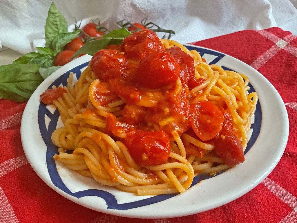 This dish may appear simple — pasta with tomato sauce — but it is in fact much more. A Neapolitan home tradition, the recipe takes its name from the cobblers of the city’s alleys. Why cobblers? Because they regularly received chunks of cheese from appreciative customers to thank them for their work. So, on Mondays — which were the cobblers’ day off — this pasta was prepared at home using the leftover tomato sauce from Sunday lunch, enriched with chili pepper, basil, and,.. extra cheese.