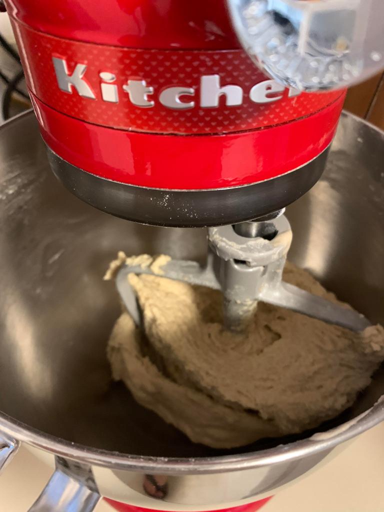After 1 hour, add the sourdough, 2 oz of water, and begin kneading. After the water has been absorbed, add the salt, remaining water*, and olive oil. Mix until you achieve a smooth dough.