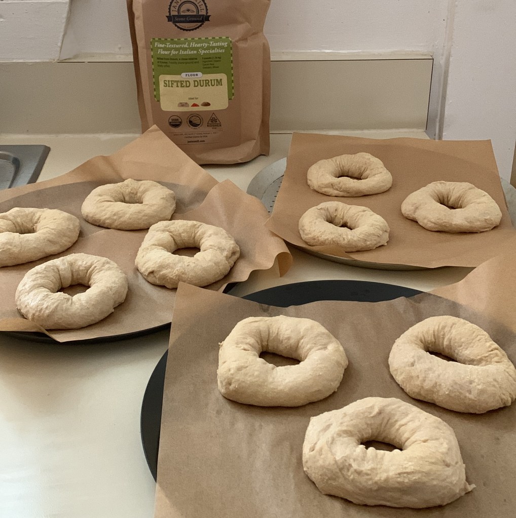 Line a baking tray with parchment paper, place the friselle on the tray, cover them with a kitchen towel, and let rise for another 40 minutes.