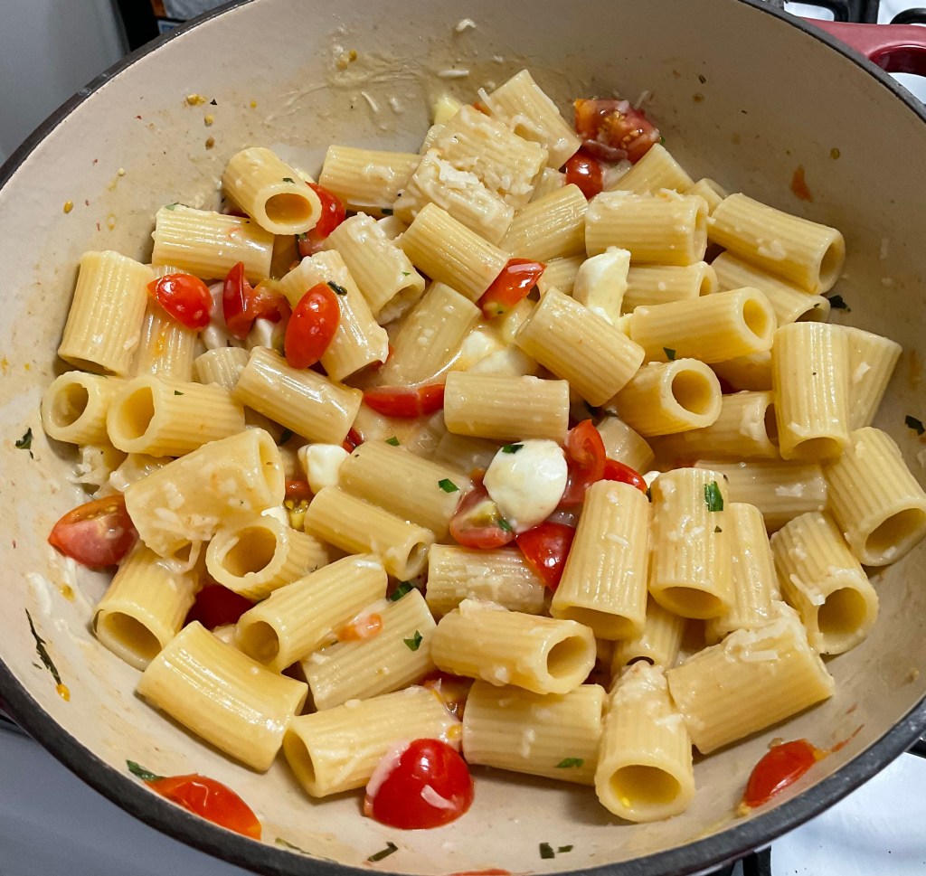 5. Mix quickly and serve the Pasta alla Checca immediately.
