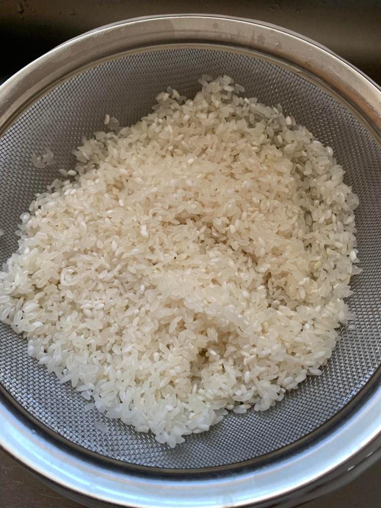 Meanwhile, put the rice in a colander and rinse to remove the starch and prevent it from sticking.