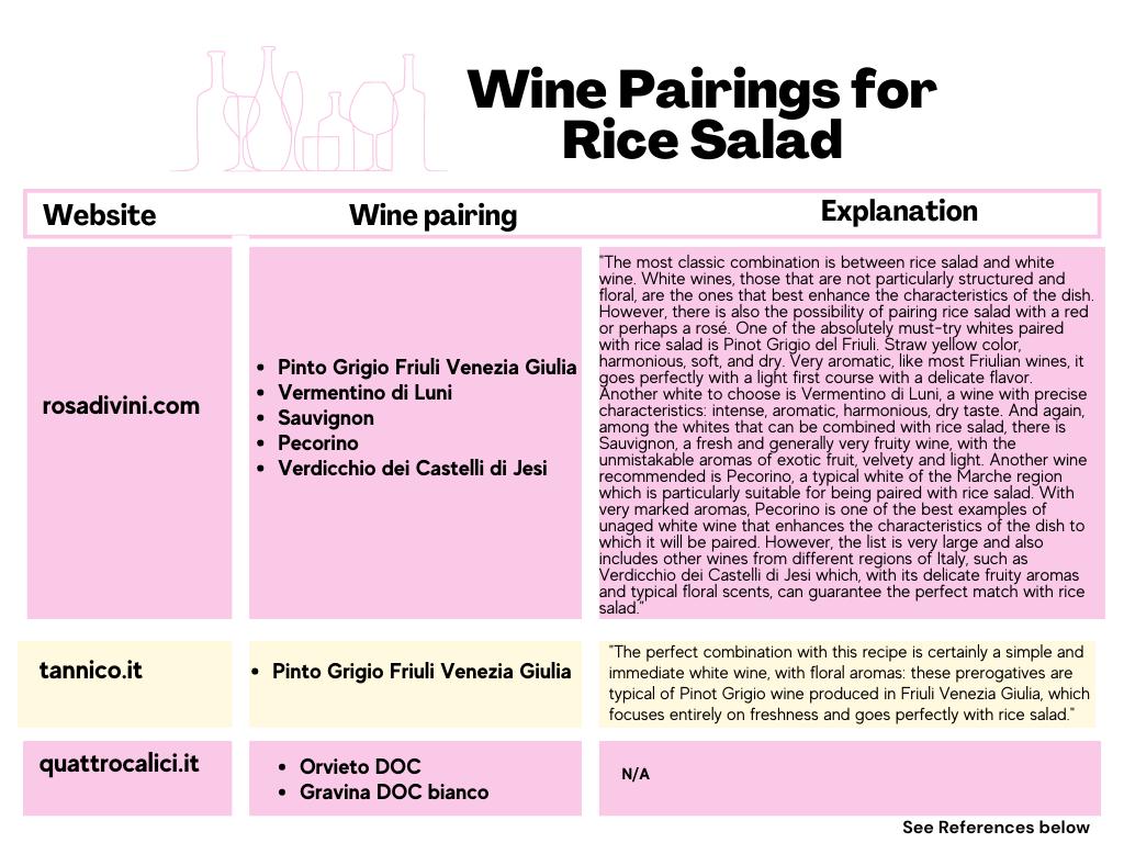 ROSADIVINI. (2022, August 4). Abbinamento cibo vino: cosa bere con l’insalata di riso. ROSADIVINI. https://www.rosadivini.com/magazine/abbinamento-vino-insalata-riso/#:~:text=L