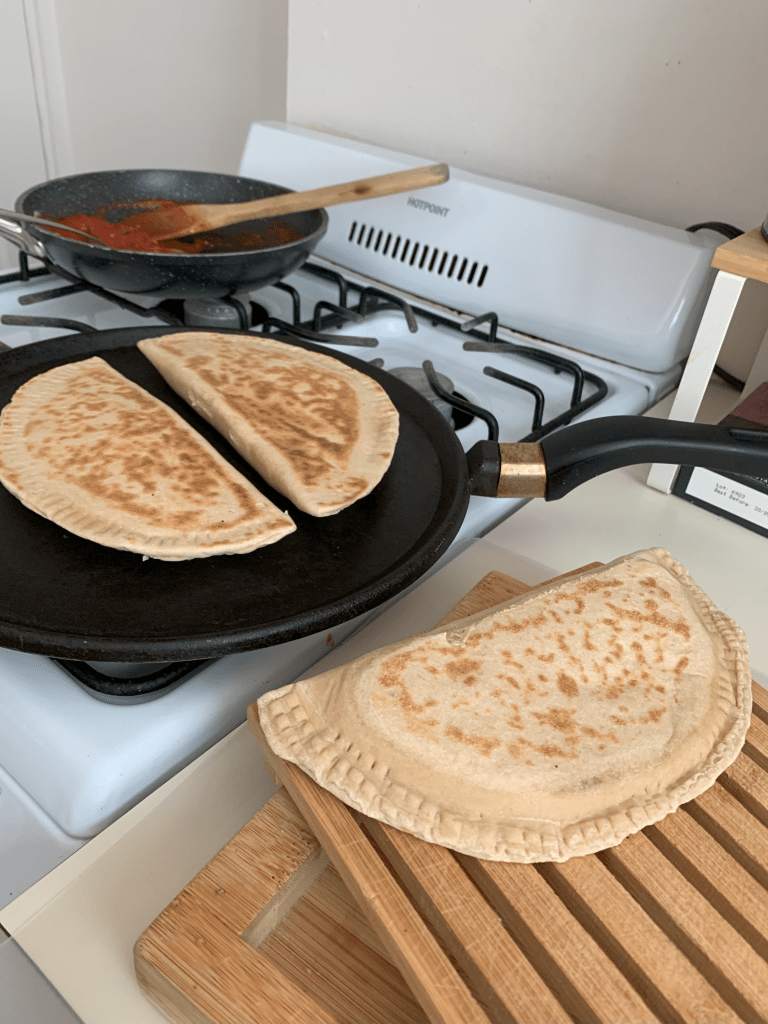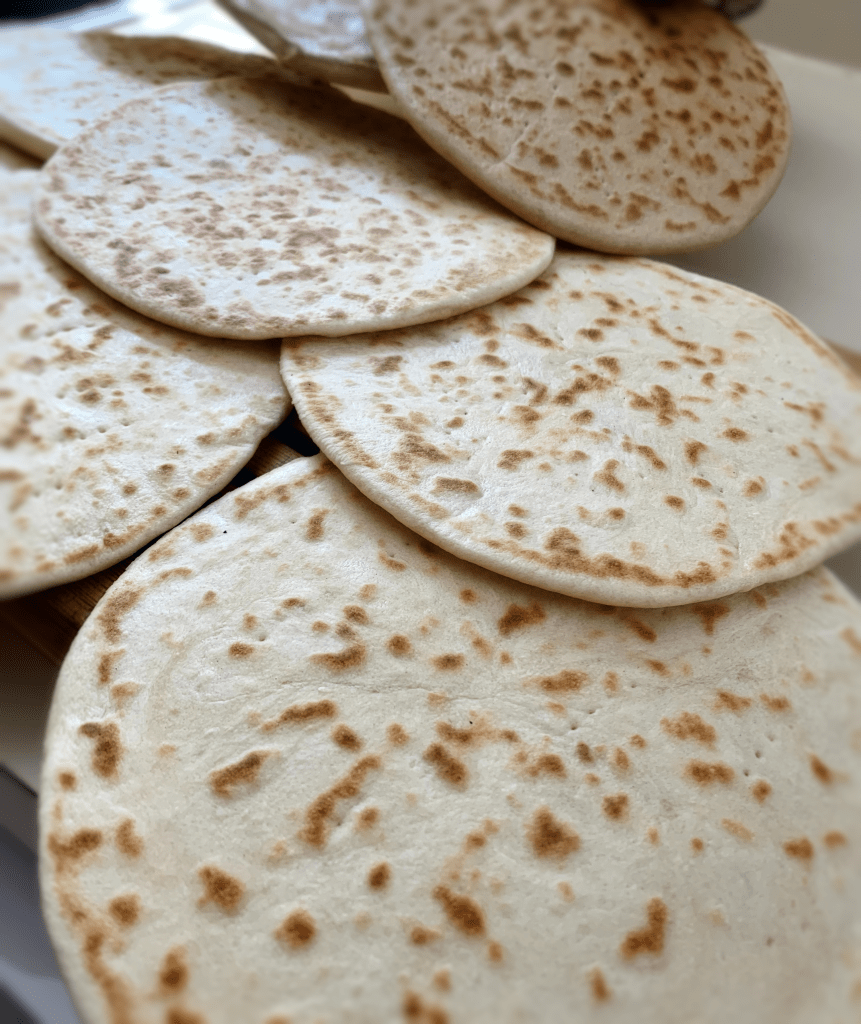 8. Place the cooked piadina on a clean cloth on a clean surface. Do not stack them.