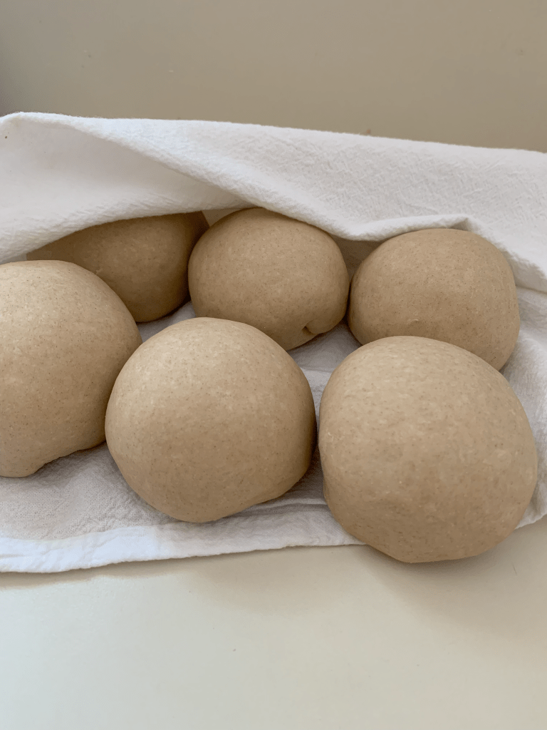 5. Remove the dough from the bowl and knead it by hand, if necessary. Cover it with a bowl and let it rest for half an hour on a pastry board.