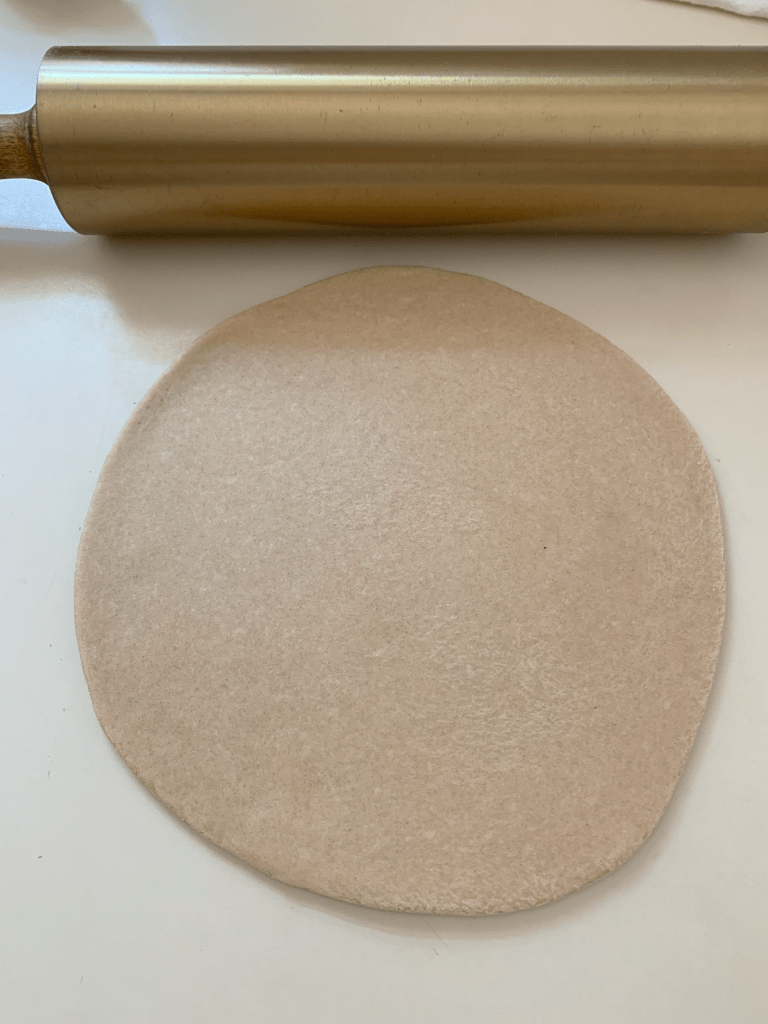 6. Divide the dough into 6-7 pieces and roll them out with a rolling pin to make discs that are 3-4 mm (1/8 inch) thick.