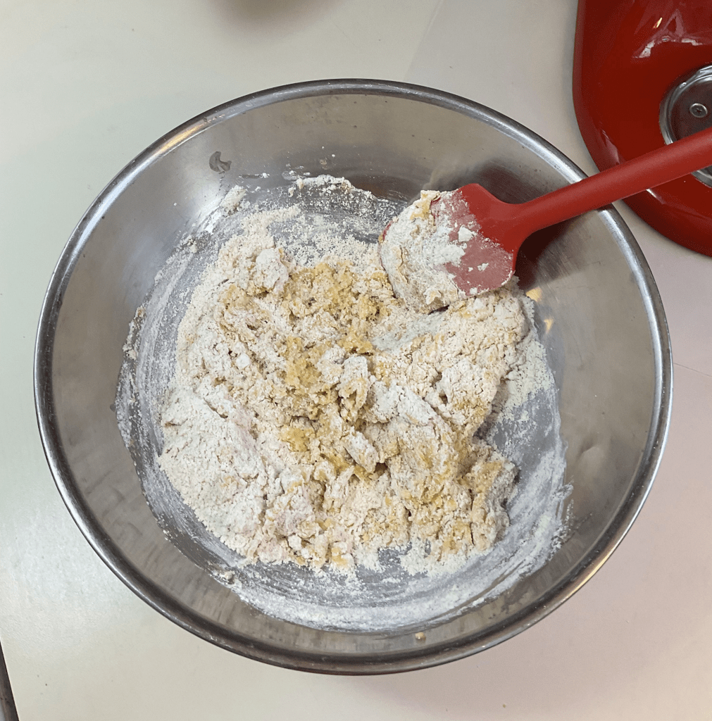 Incorporate the dry ingredients. Add the flour, baking powder, and salt to the wet mixture. Stir until a soft, well-combined dough forms (this takes just a few seconds).