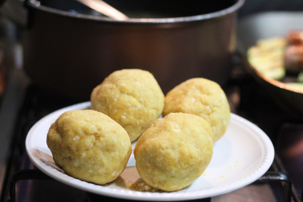 - Mix all the ingredients together and form balls of dough about the size of a potato ricer.