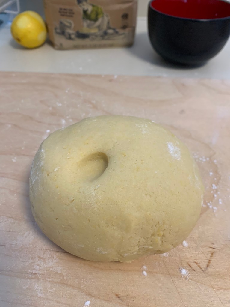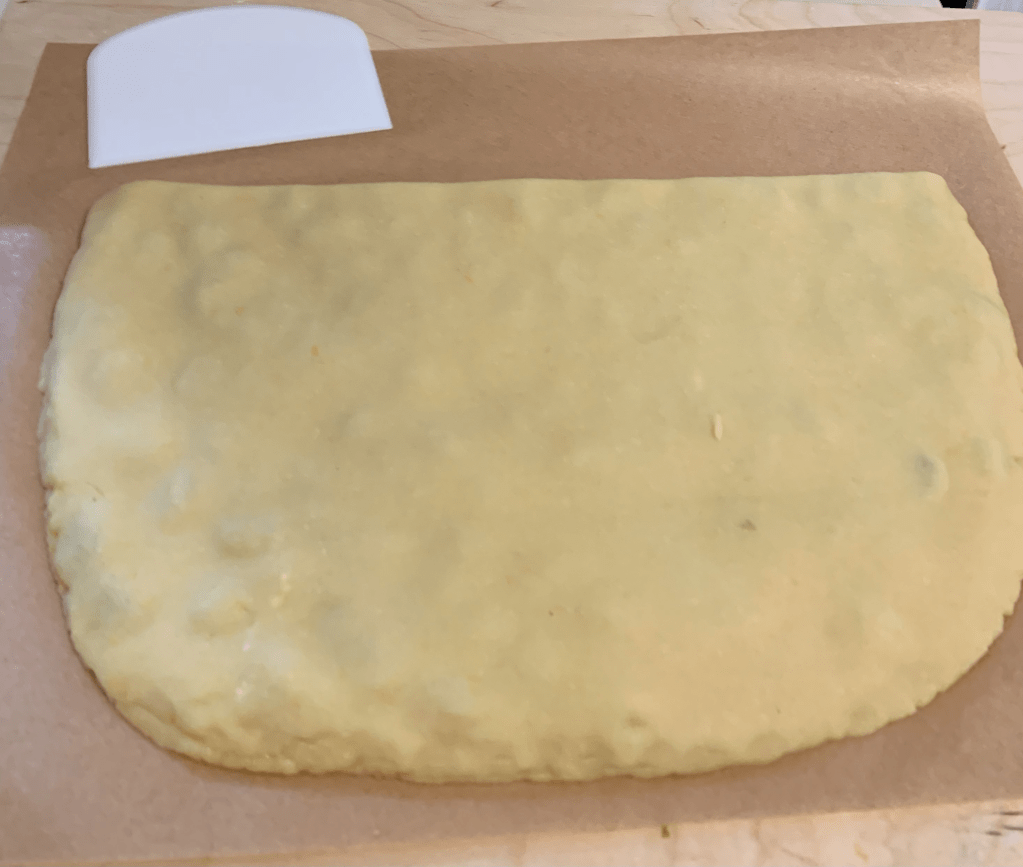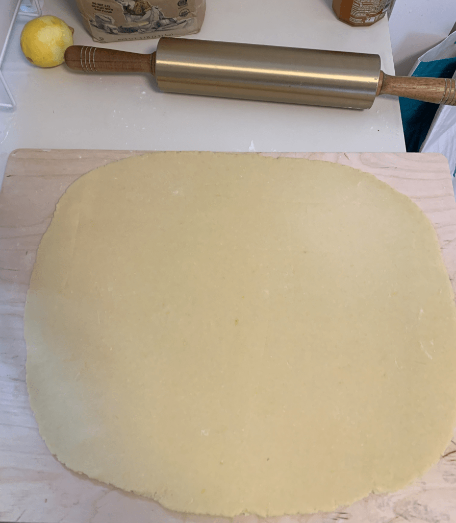 Shape the dough into a ball, let it rest covered for a few minutes, then roll it out, trying to give it a rectangular shape (you may want to use some flour in case the dough is sticky).
