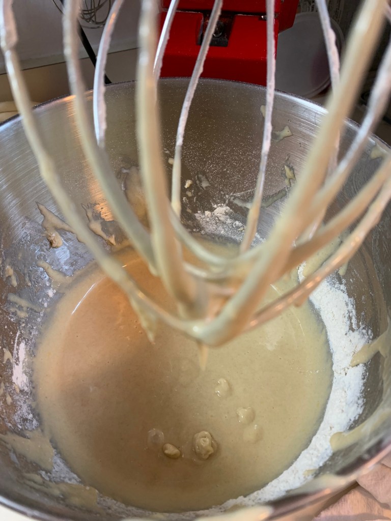 Once the above ingredients are incorporated, add the flour mixed with baking powder, and finally a pinch of salt.