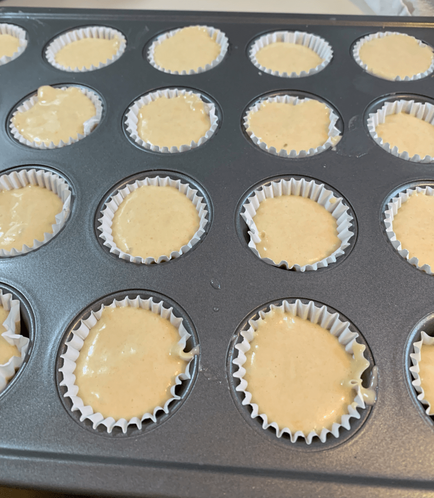 Place paper liners into the molds. Use whatever baking molds you have; I used a 24-muffin mold with a 1-7/8-inch diameter.