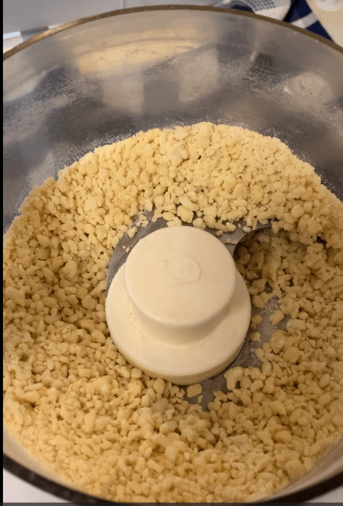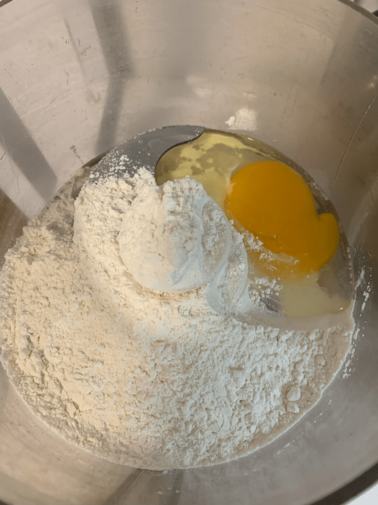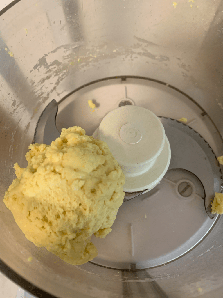 Add the flour and egg to the food processor and mix until you get a dough ball. If the egg is too small and doesn’t form a ball, add a spoonful of water.