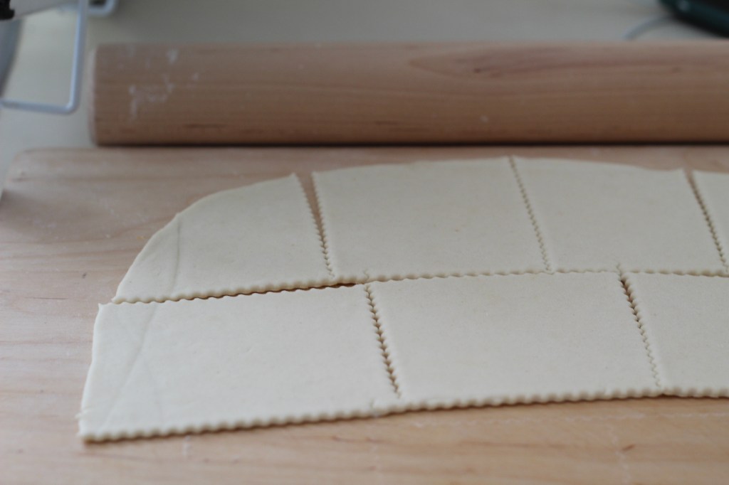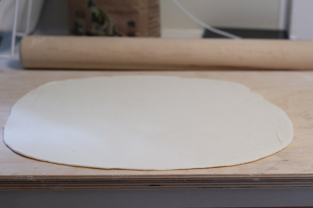 Once rested, roll out the dough with a rolling pin until it’s 3–5 mm thick.