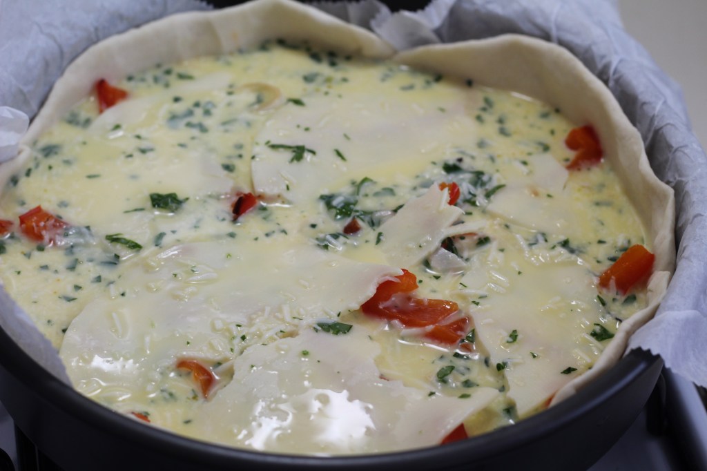 Assemble the quiche: