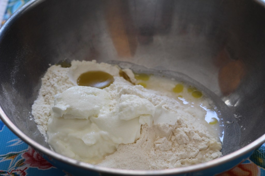 Quickly mix all the ingredients in a bowl or food processor, adding a bit of water if the dough is still too dry. Form a soft ball, place it in an oiled bowl, cover with a plate, and let it rest in the fridge for at least 30 minutes.
