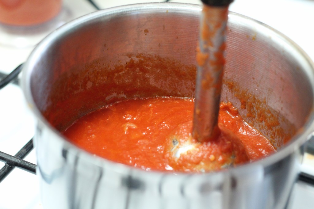 - Tall, narrow pot – for cooking and emulsifying the tomato sauce
