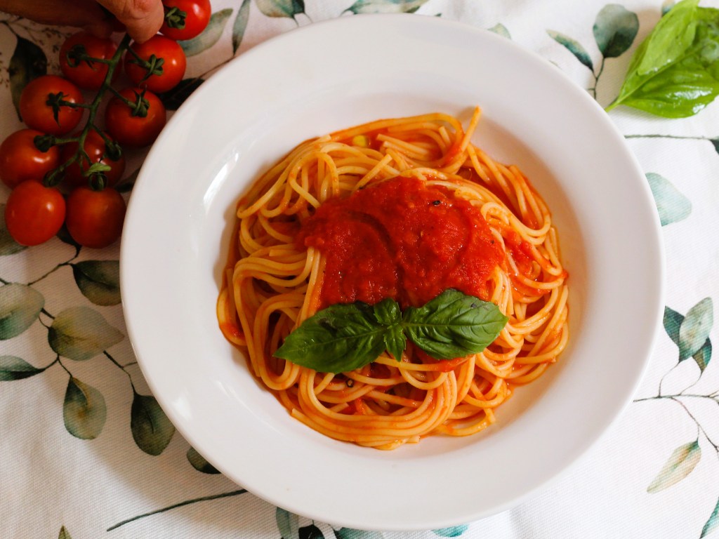 Spaghetti with tomato sauce, in all its simplicity, carries a rich history tied to its basic ingredients: pasta, tomato, garlic or onion or leeks, extra virgin olive oil, and basil.
