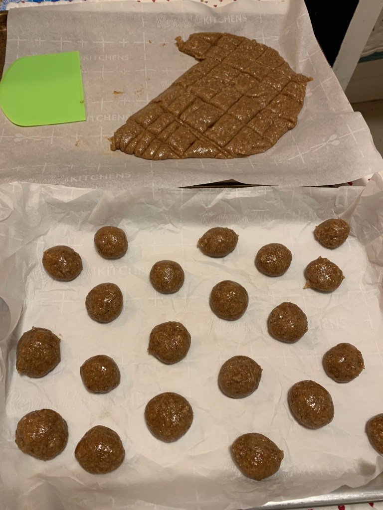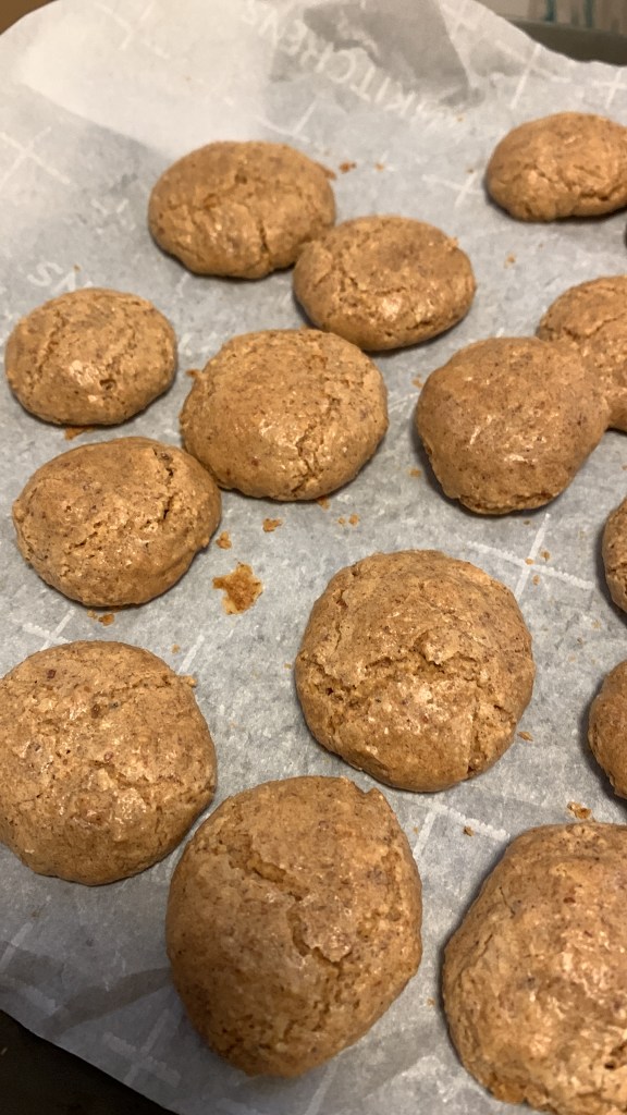 Using a teaspoon, take small portions, use your hands to roll them into balls and arrange them well spaced on a baking sheet lined with parchment paper.